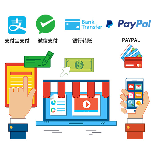 银行转账、支票、微信、支付宝、PAYPAL等等方便您随时充值和结账。